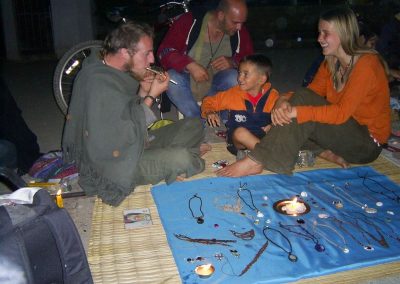 Yesterday we rent a motorbike and went to a holy temple in the mountains. I tried to concentrate at the temple and to catch the spirit of the place, that was once upon a time. Many people, foreigners and locals searching for luck and peace and taking „nice“ photos. The ride was exciting, because the roads were all serpentined and very cool to drive. We hope to find some place in Thailand, far away rom all the organized tours, to reach some peace and quieteness. thailand is polluted by the dollars and it is hard to see a lot of foreigners with the local women, who accompany them and make them to have a „nice“ holiday with all their needs. Anyway we are ina good mood and full of hope and still try to overbring our mainly message: